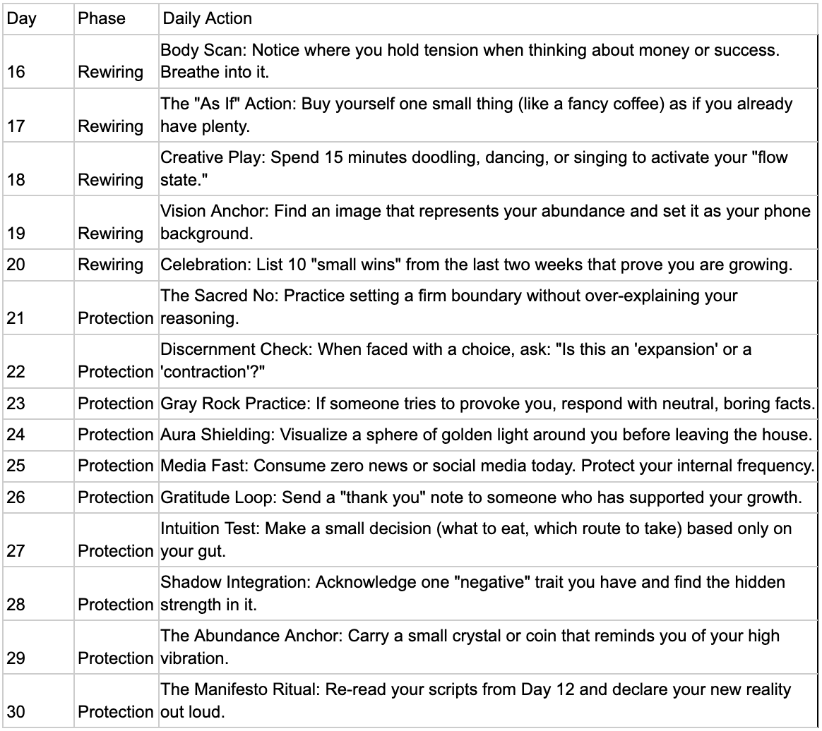 The final ten days of the Manifesto are perhaps the most critical: "The Shielding." As your vibration begins to rise, you will inevitably encounter "tests" in the form of people or situations that try to pull you back down to your old frequency. This is often where seekers fail, because they haven't built the emotional resilience necessary to protect their new state of being.
